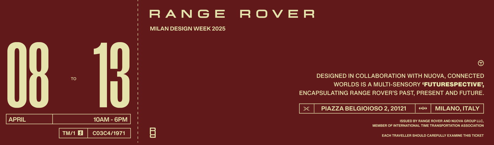 08-13 April | Range Rover at Milan Design WeekRSVP: rangerover@camronglobal.com | Palazzo Belgioioso 2, 20121, Milano